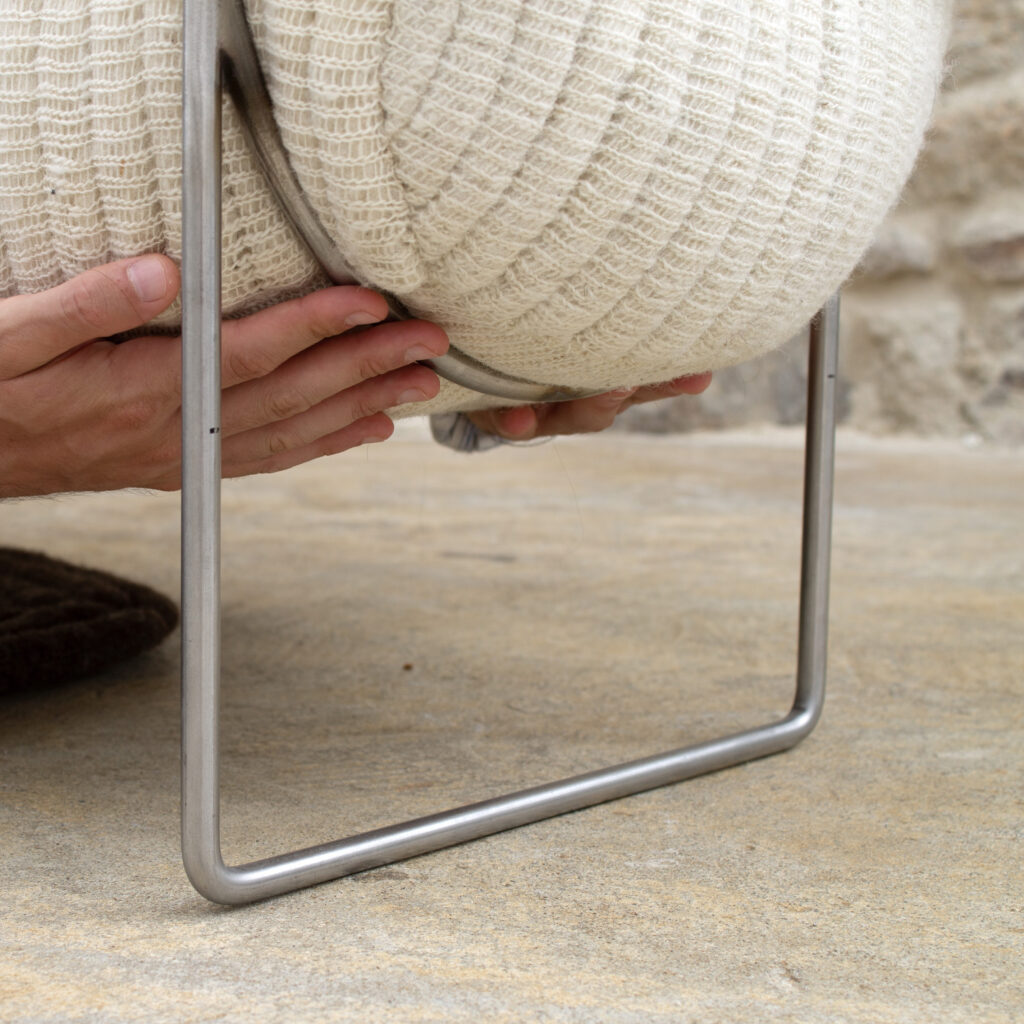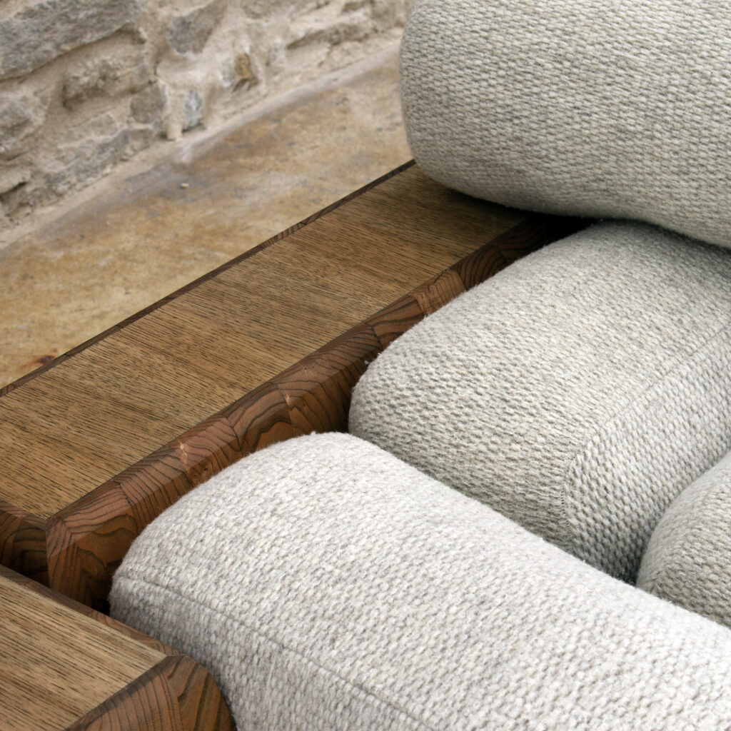 Détail pouf Solange revêtu d'un textile que j'ai développé pour Héloïse Levieux.